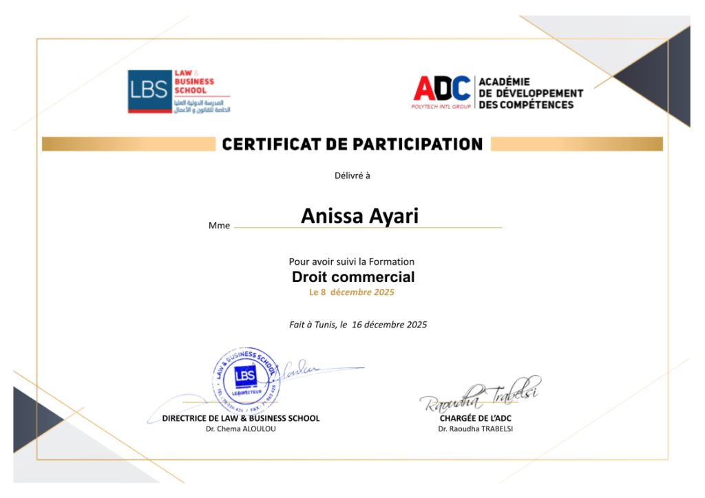 Félicitations Anissa Ayari ! Télécharger le certificat